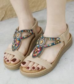 2025 New European and American Sandals Bohemian Rhinestone Comfortable Round Head