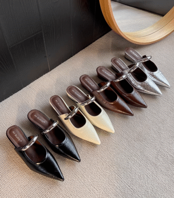 2025 new style elegant skirt-matching French mule with inner height-enhancing closed-toe half-Shoes for women