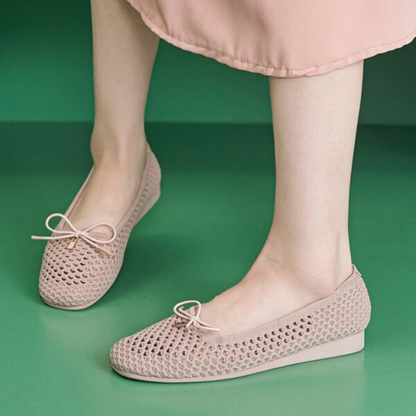 New 2025 bow-knot hollow low-heeled shoes, light, soft and comfortable women’s shoe
