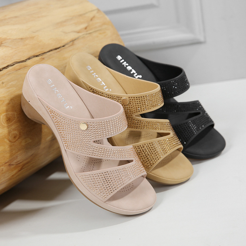 New 2025 Spring and Summer Amazon Casual Rhinestone Sandals