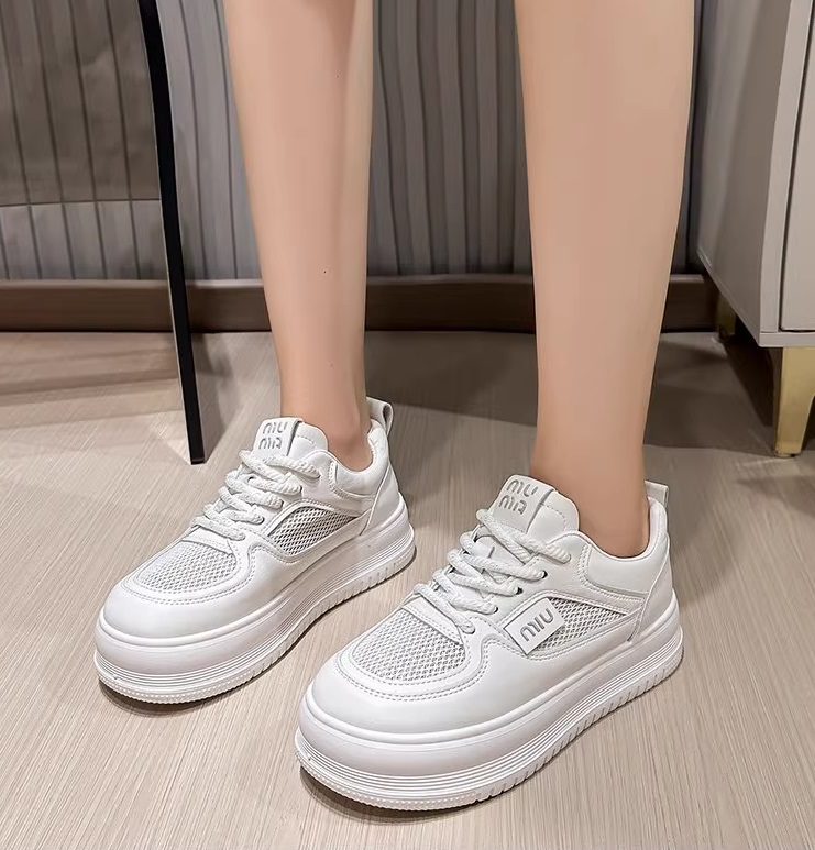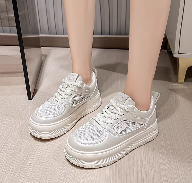 2025 New Style Petite Women’s Height-Increasing White Sneakers, Summer Style, Mesh Breathable Thin Thick-Soled Sneakers