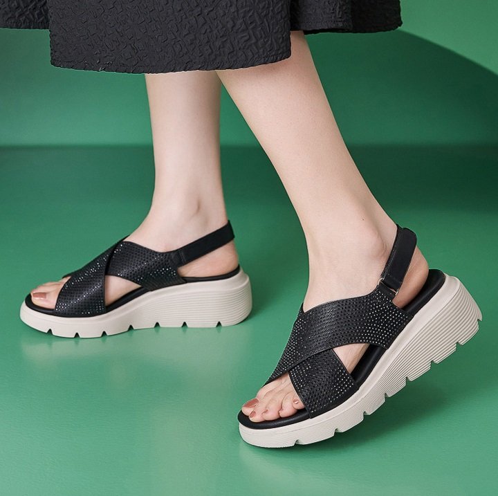Summer 2025 Amazon New Diamond Velcro Women’s Sandals Wedge Heel Casual Lightweight
