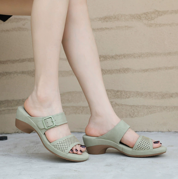 New Light Slippers Casual Simple Slope Heel Metal Buckle Large Size Women’s Sandals