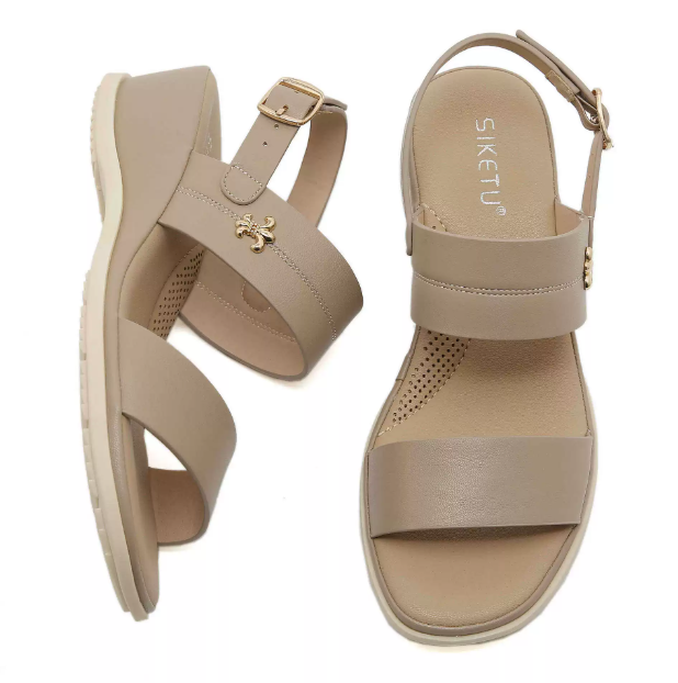 2025 summer new outdoor leisure metal simple wedge heel beach sandals for women