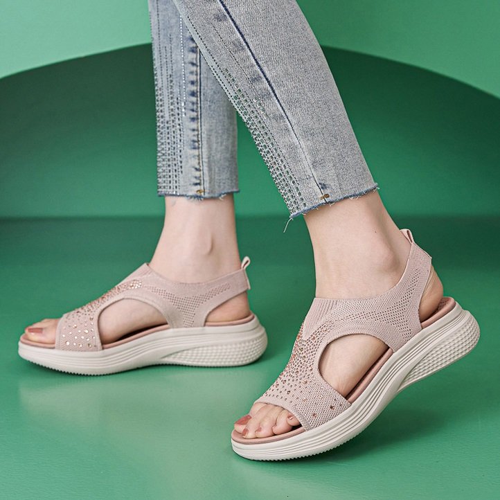 New lightweight sandals casual sports comfortable thick bottom rhinestone stitching large size women’s shoes