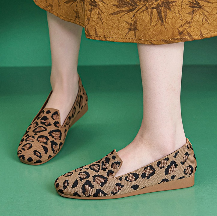 New retro leopard print flat shoes versatile, light, soft and comfortable large size women’s shoes