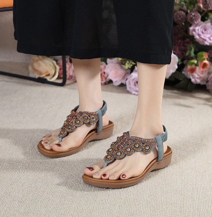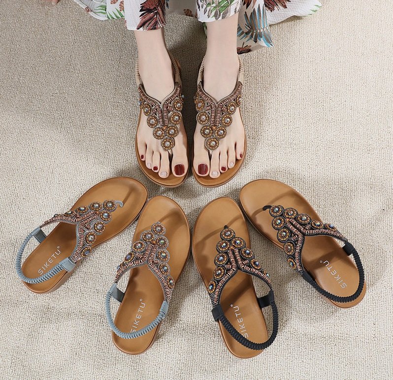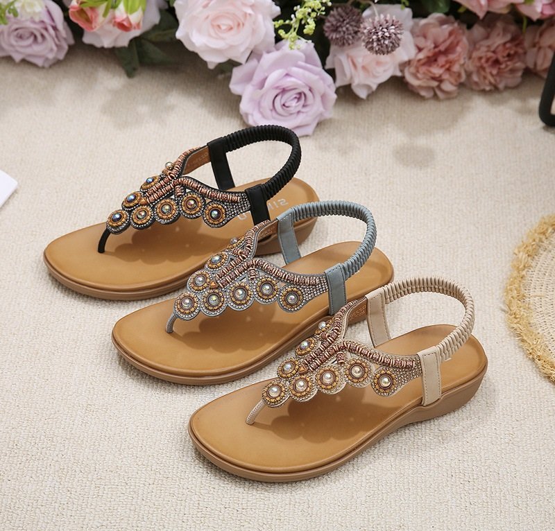 Be the first to review “Summer New Bohemian Style Flip-Flops Beaded Rhinestone Buckle Elastic Heel Elastic Band Women’s Shoes”
