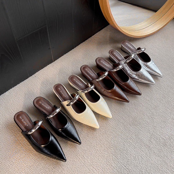 2025 new style elegant skirt-matching French mule with inner height-enhancing closed-toe half-Shoes for women